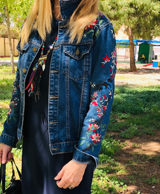 plumas de diferentes colores y esta bike vaquera con bordados florales