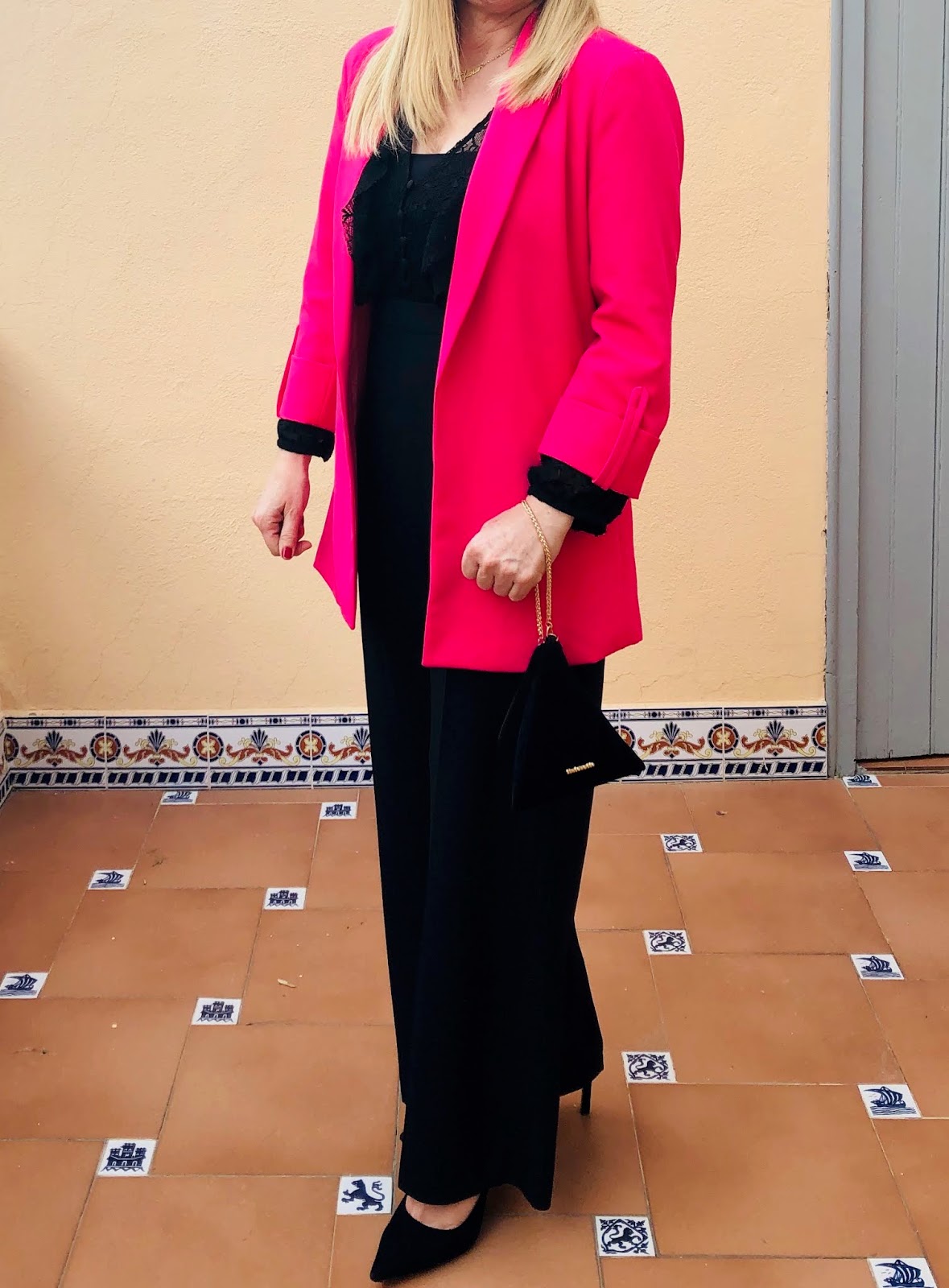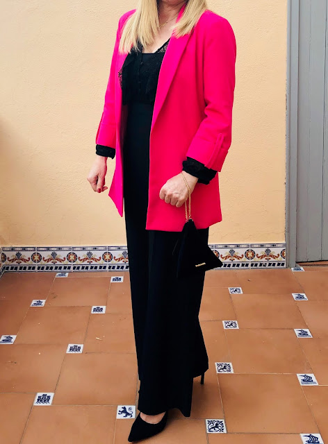 por si refrescaba por la noche , completé el look adquiriendo una blazer color fucsia de BERSHKA, obersize ,también de
